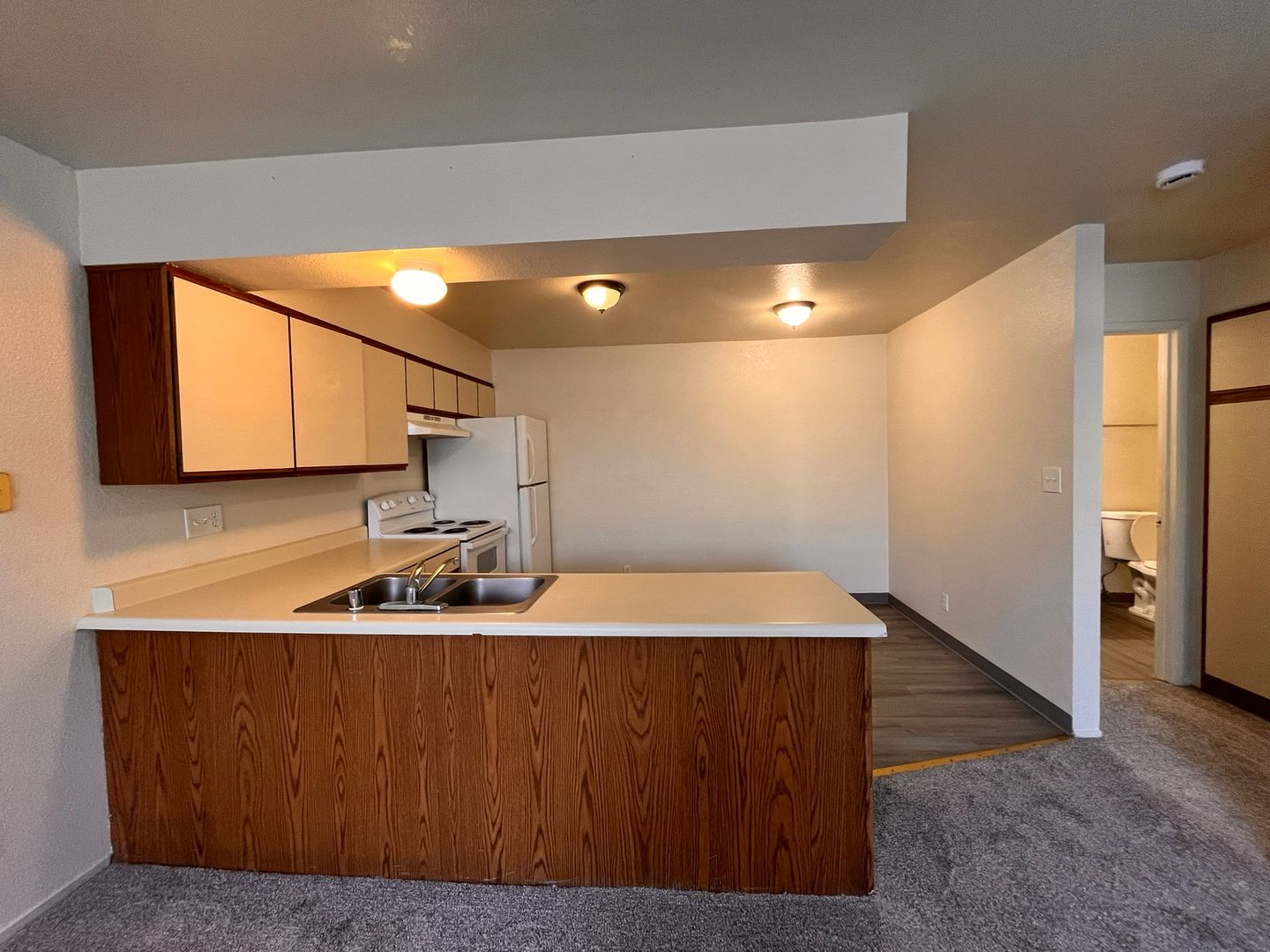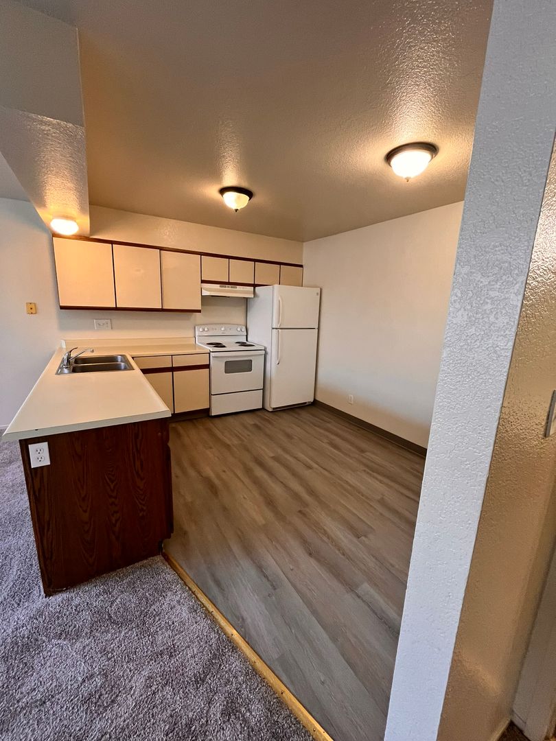 Willow Tree Apts, upstairs unit 1/1, new interior paint, new flooring, wall cooler/heat, blinds, electric stove, frig. stackable washer/dryer area only for laundry. w/s/g paid, assinged parking spot.