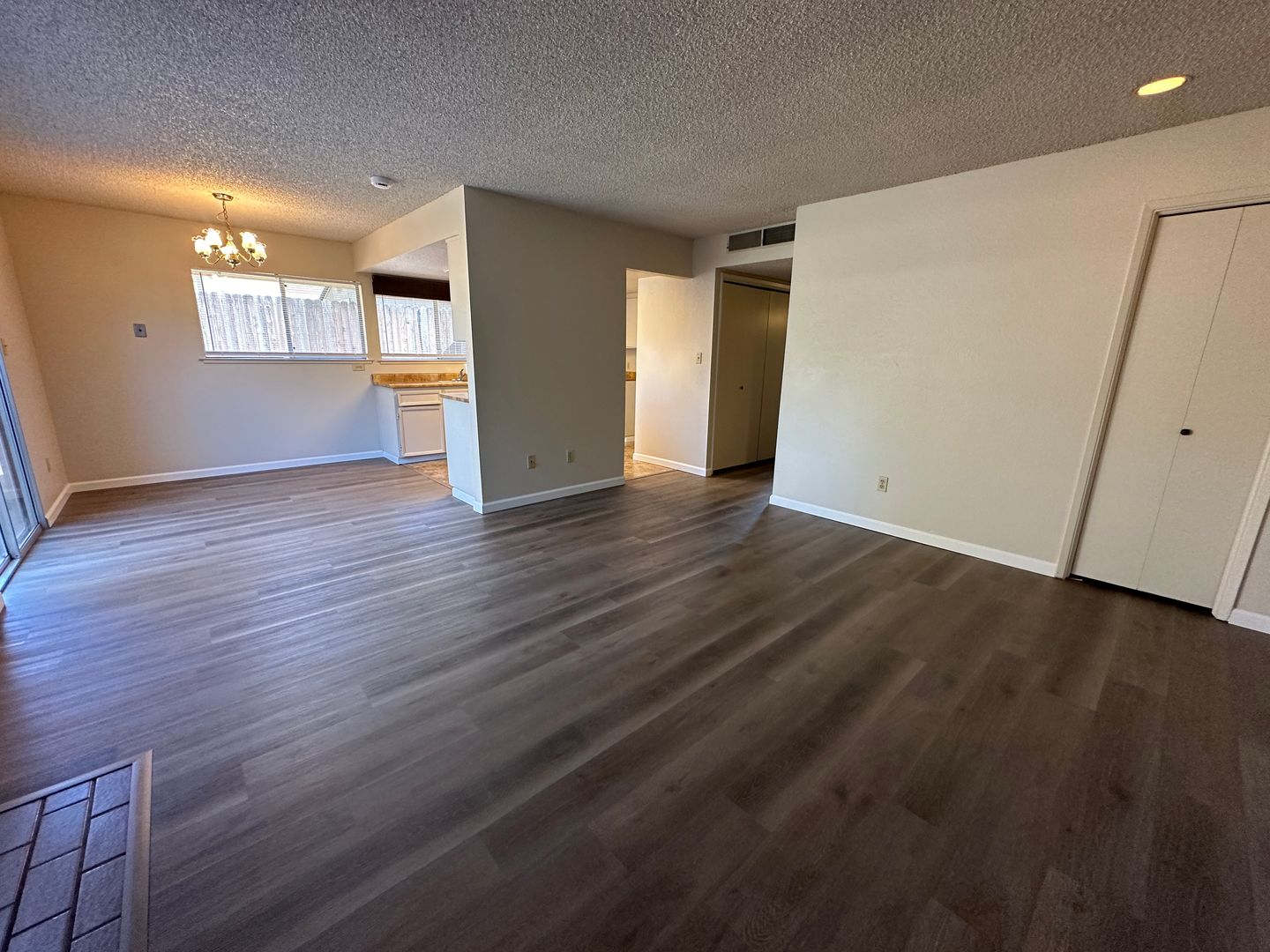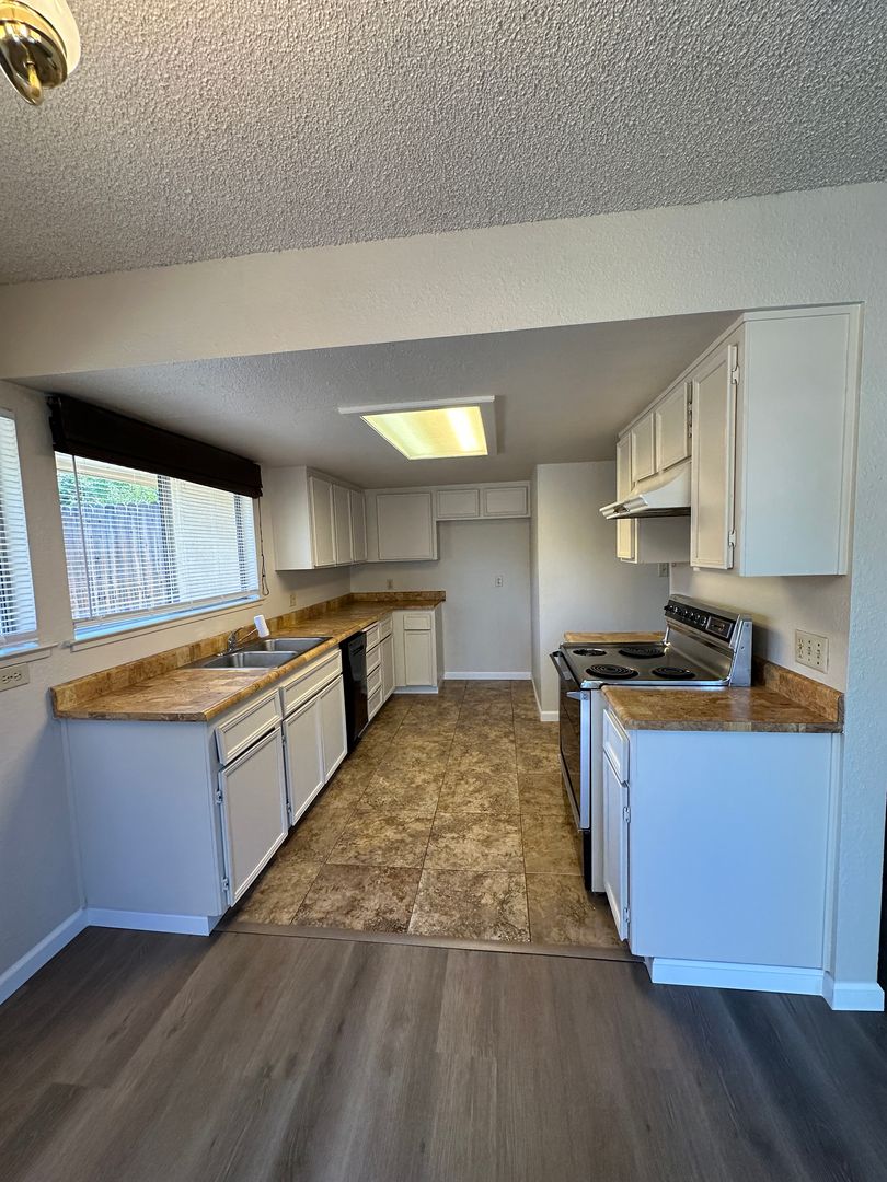 2/1.5, New interior paint and new lvp flooring, some tile in kitche/baths, inside laundry hook-ups, fireplace, stove, dishwasher, central h/a, single level, gated complex, community pool, tennis courts. end unit