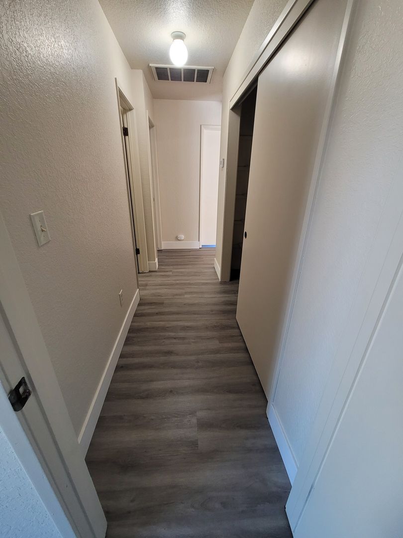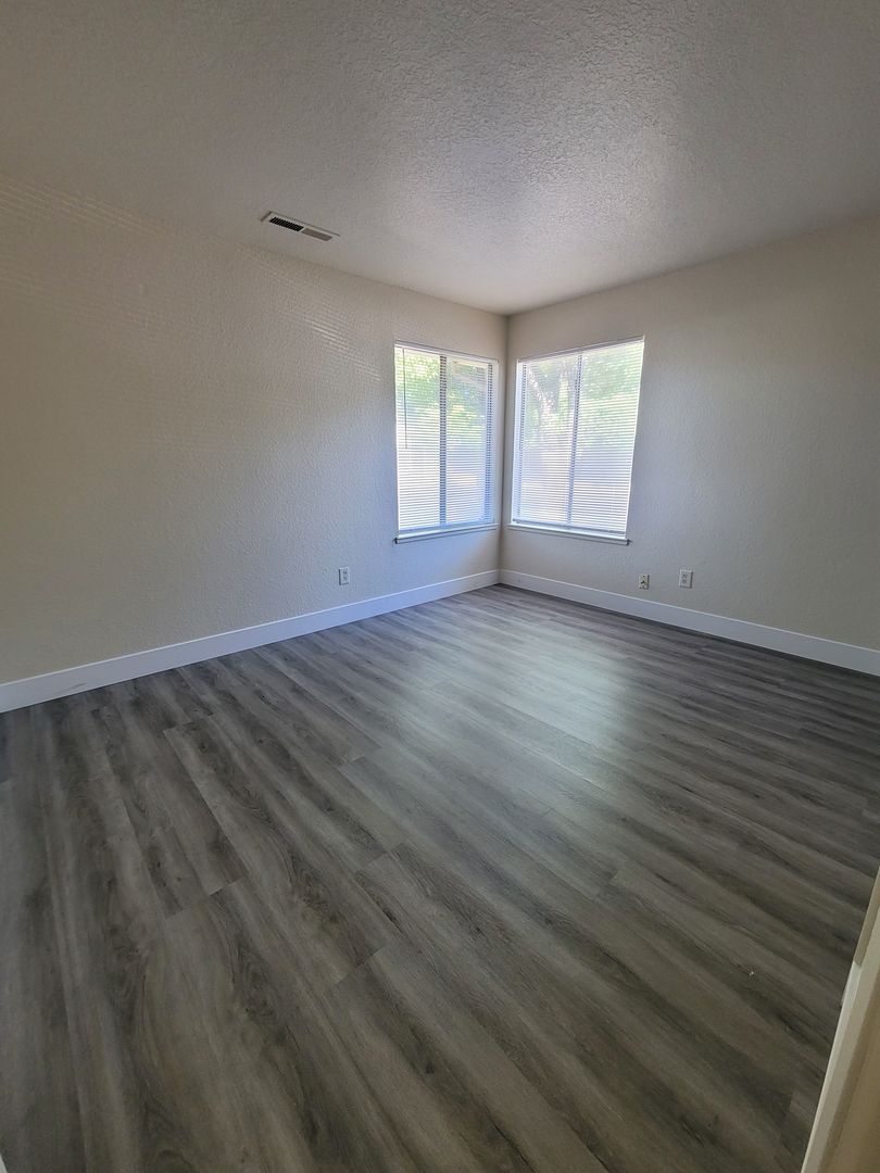 3/2 duplex in a desirable established neighborhood, 2- car garage, new interior paint, new flooring throughout, new blinds, kitchen counters tiled, stove, new refrigerator, central heat/air, w/s/g paid.