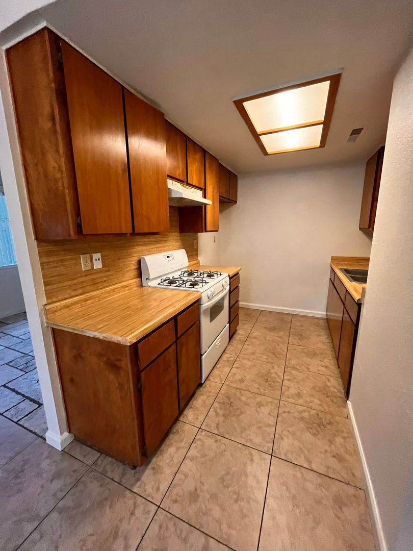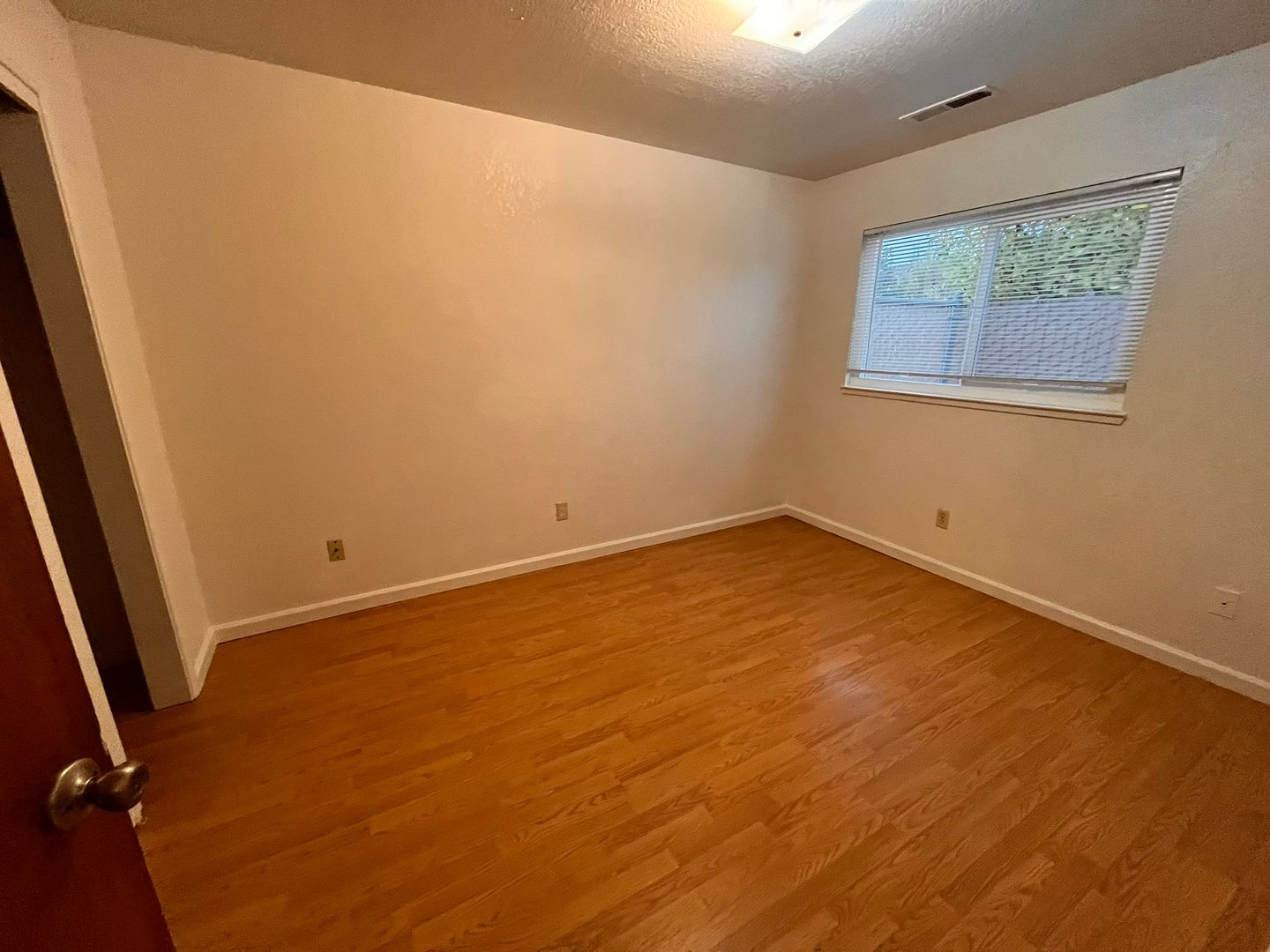 Cottage style complex 2 bedrooms, 1 bath, tile and laminate flooring, blinds, central heat/air, one covered carport only, laundry hookup in bathroom, gas stove, near school and shopping center.