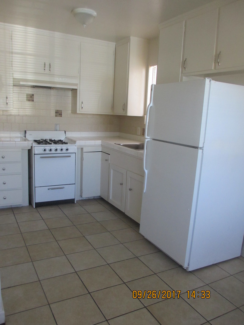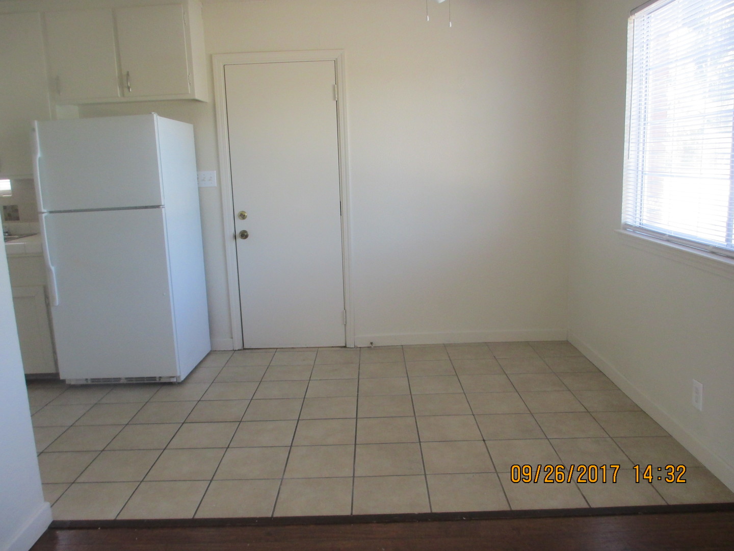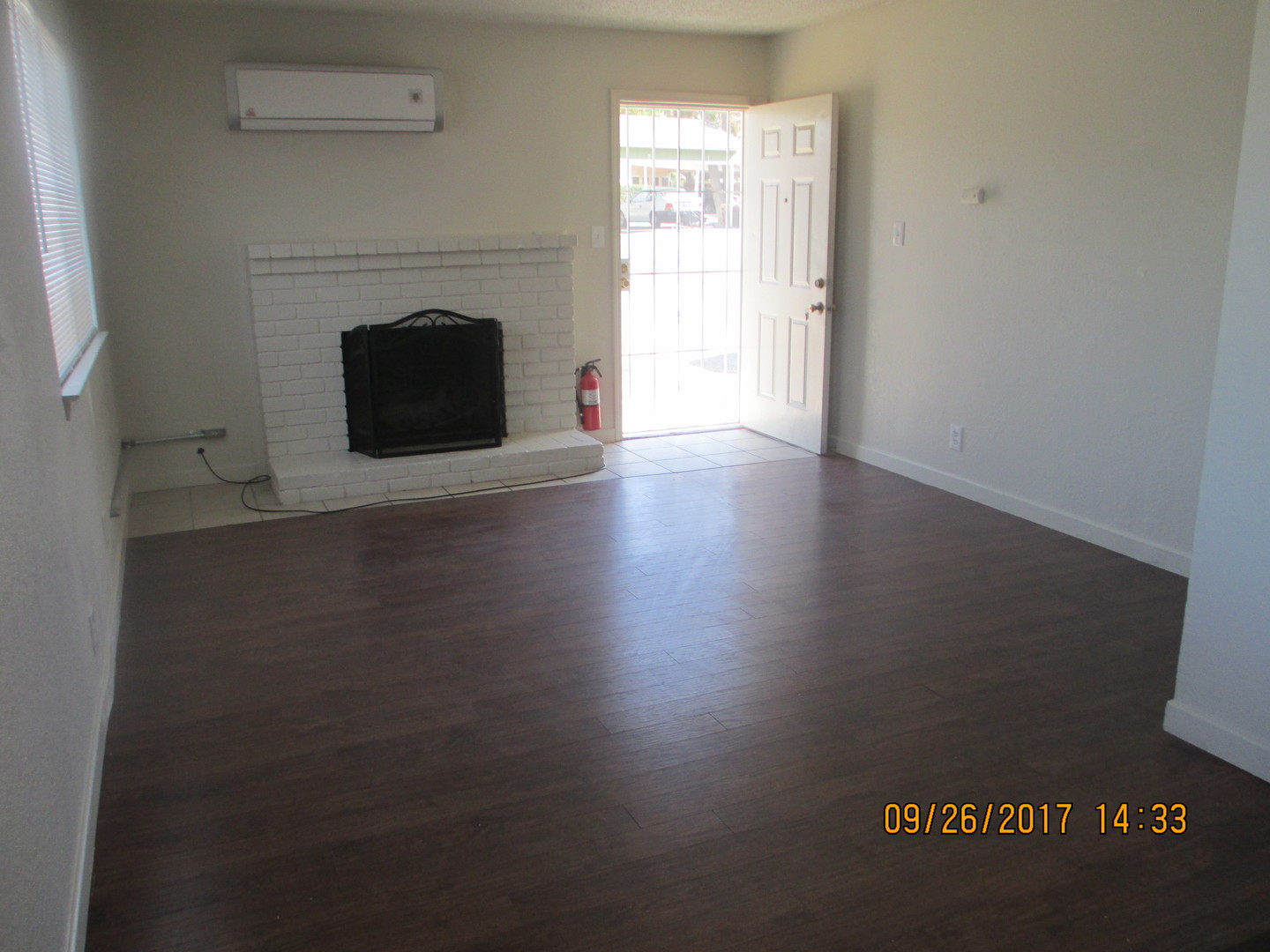 Triplex. 1/1, 1-space covered carport w/storage room with washer/dryer hookups, laminate in living/bedroom and hall, tiled kitchen/dining and bathroom, has stove, refrigerator, blinds, fp, newer heat/air ductless system. **No storage allowed in carport or back breeze way area. **No storage allowed other than in the storage closet.