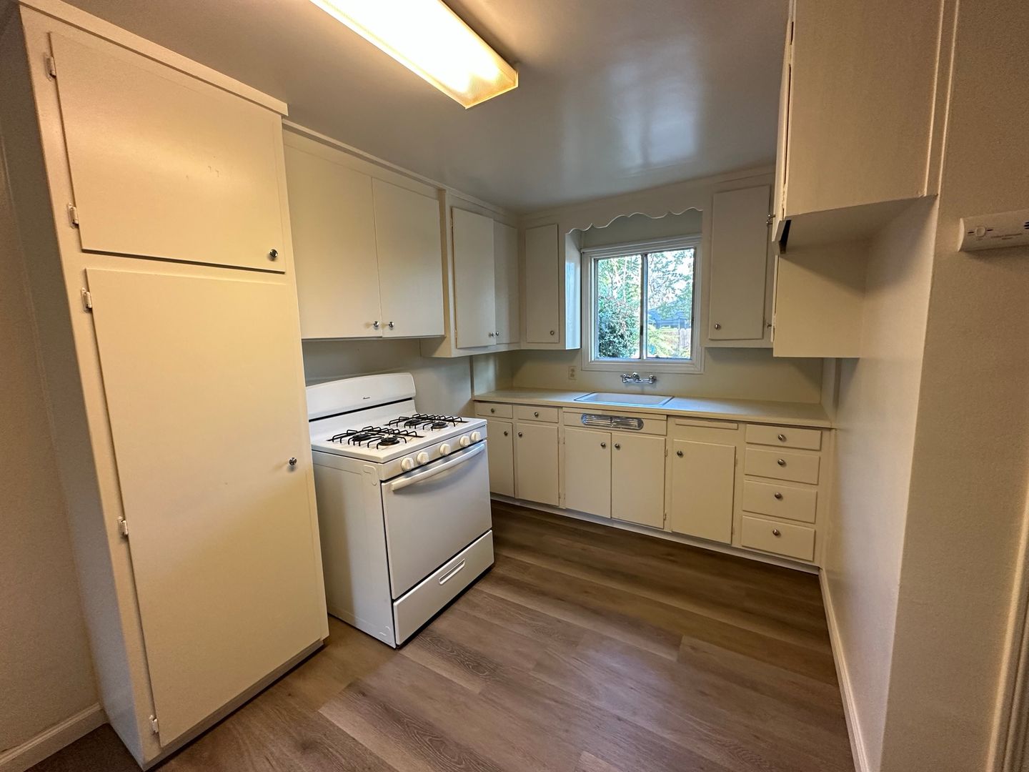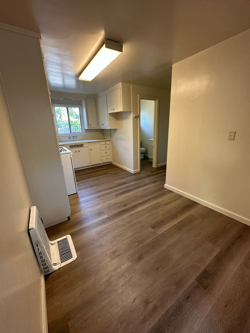 New remodeled unit 1/1 with new interior paint, new luxury plank floors, some new windows, new window rods. One space parking, stove only. w/s/g paid. wall heat/window a/c, part of a multi-unit complex